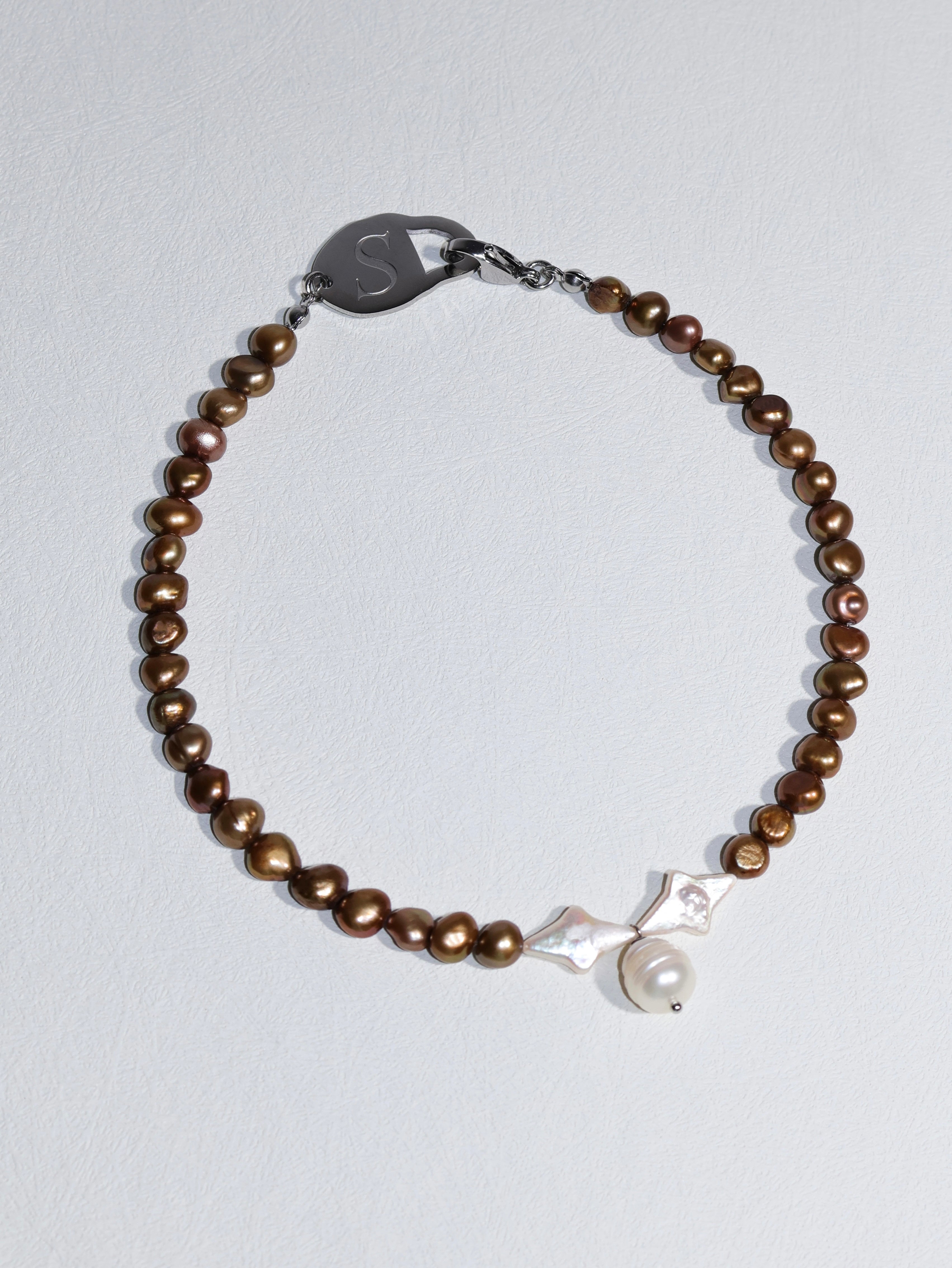 Materials: A mix of brown and white genuine freshwater pearls, silver-toned stainless steel hardware