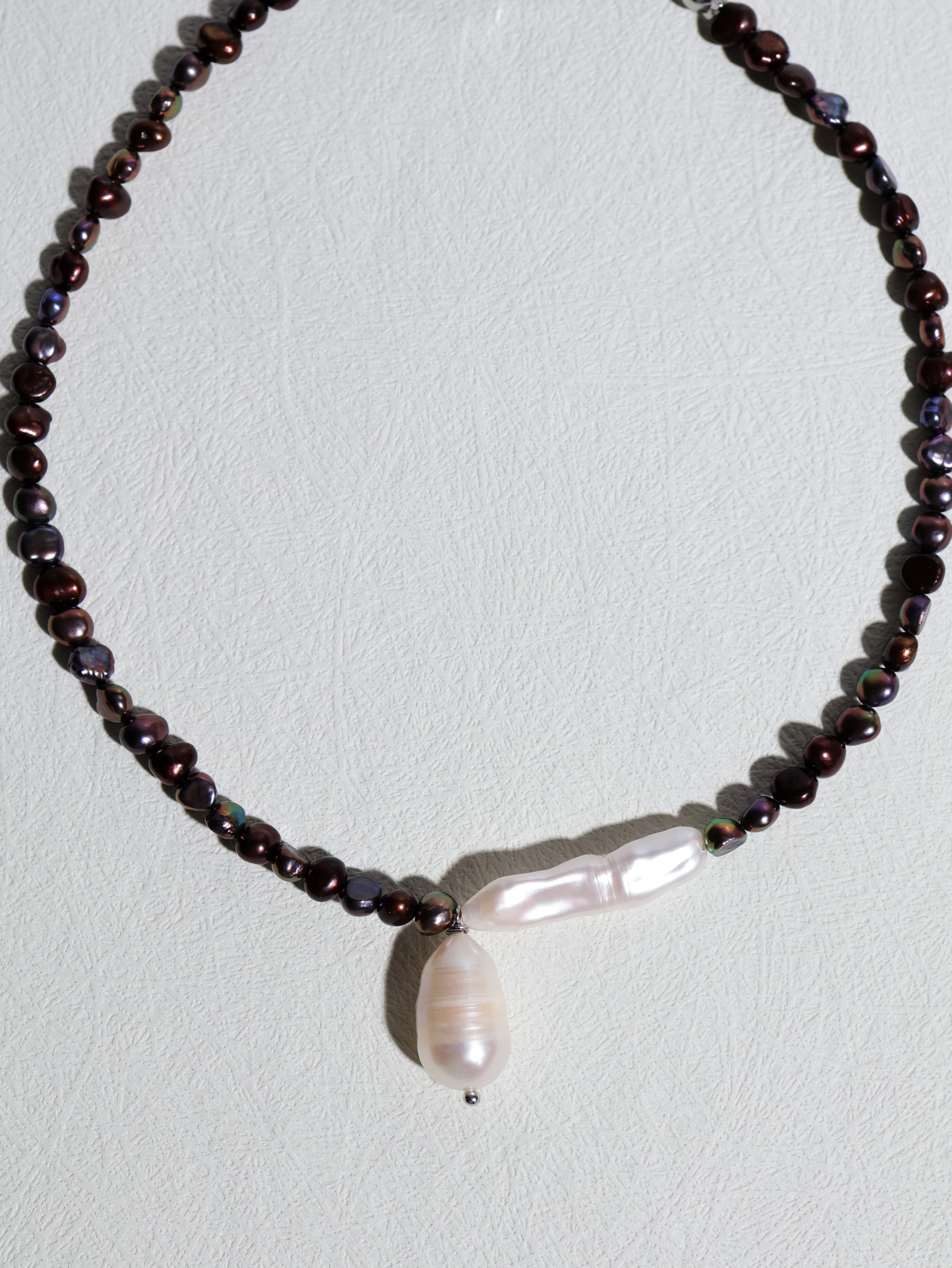 Materials: A mix of genuine brown and white freshwater baroque pearls, silver-toned stainless steel hardware