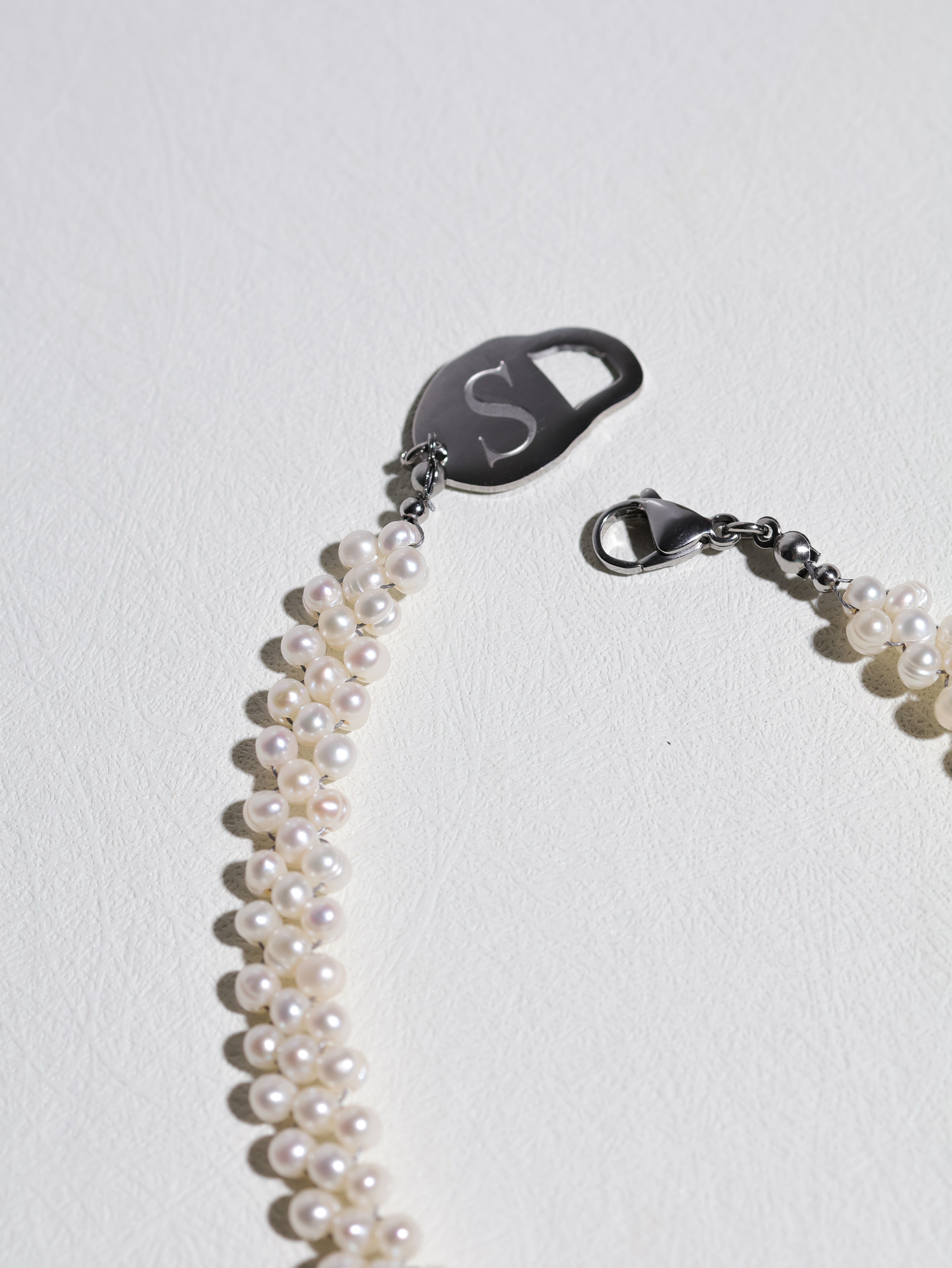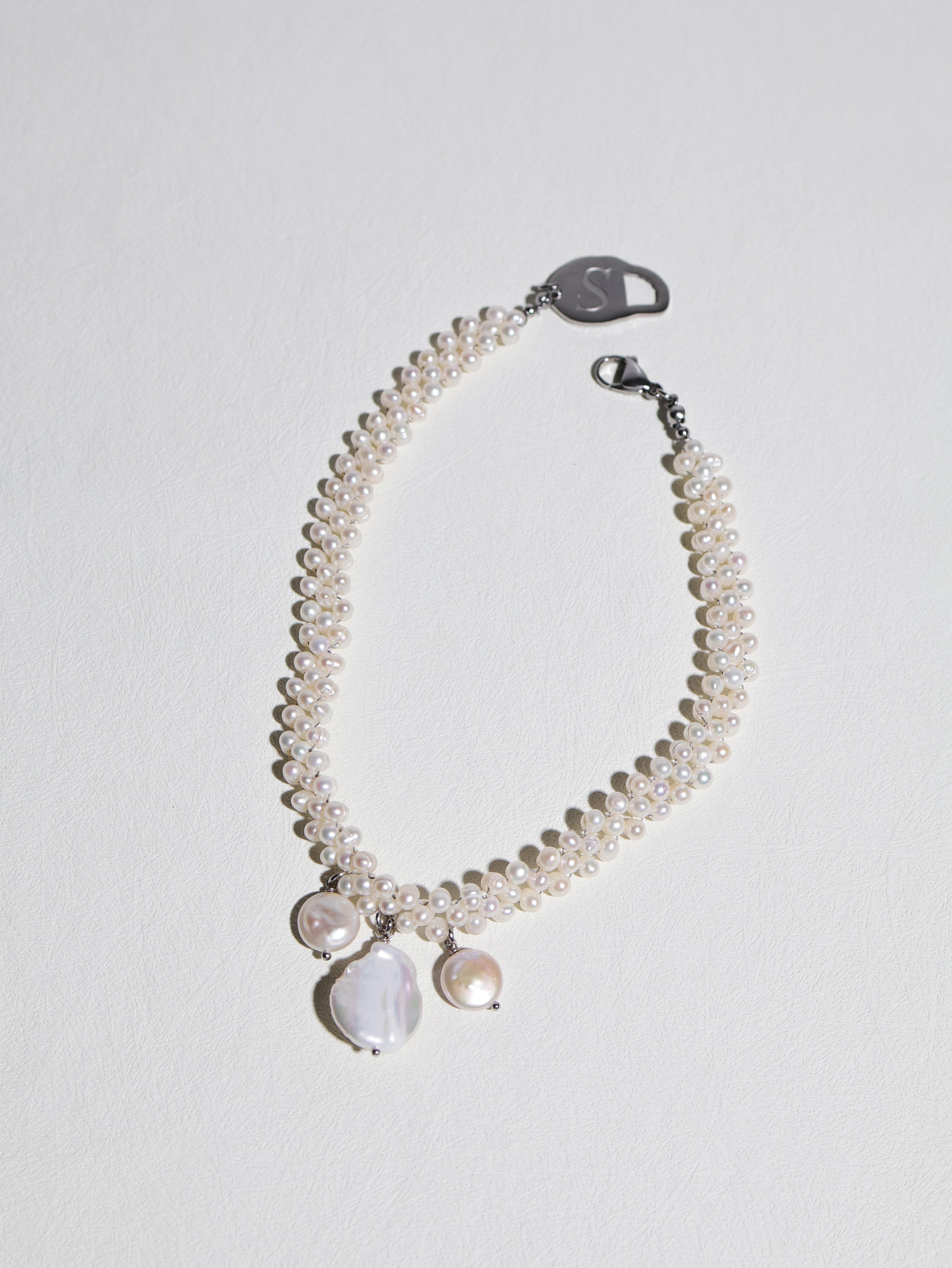 Materials: Genuine white freshwater pearls, pink rectangle freshwater pearl, silver-toned stainless steel hardware
