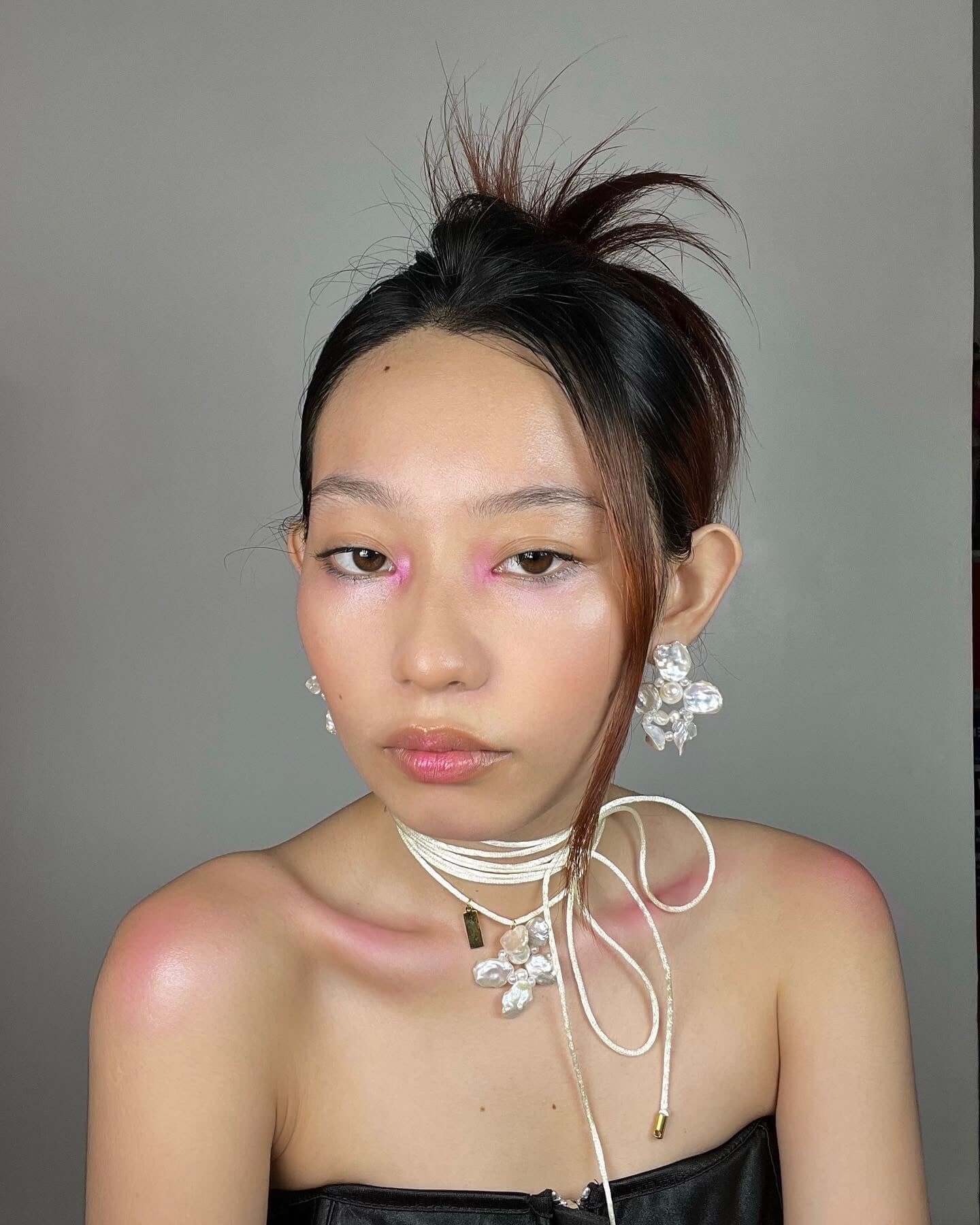 Material: Natural freshwater pearls, satin cord, and stainless steel hardware