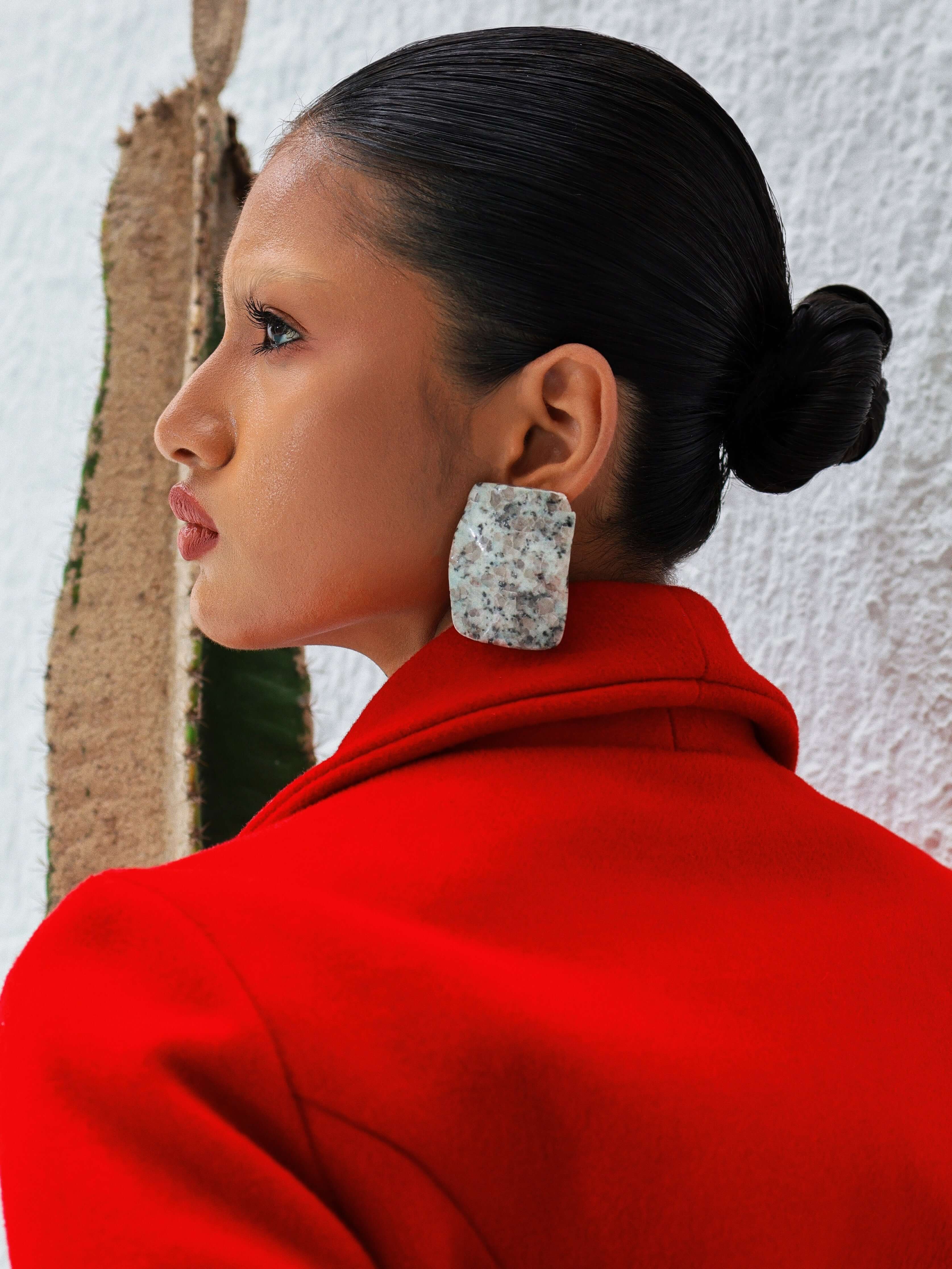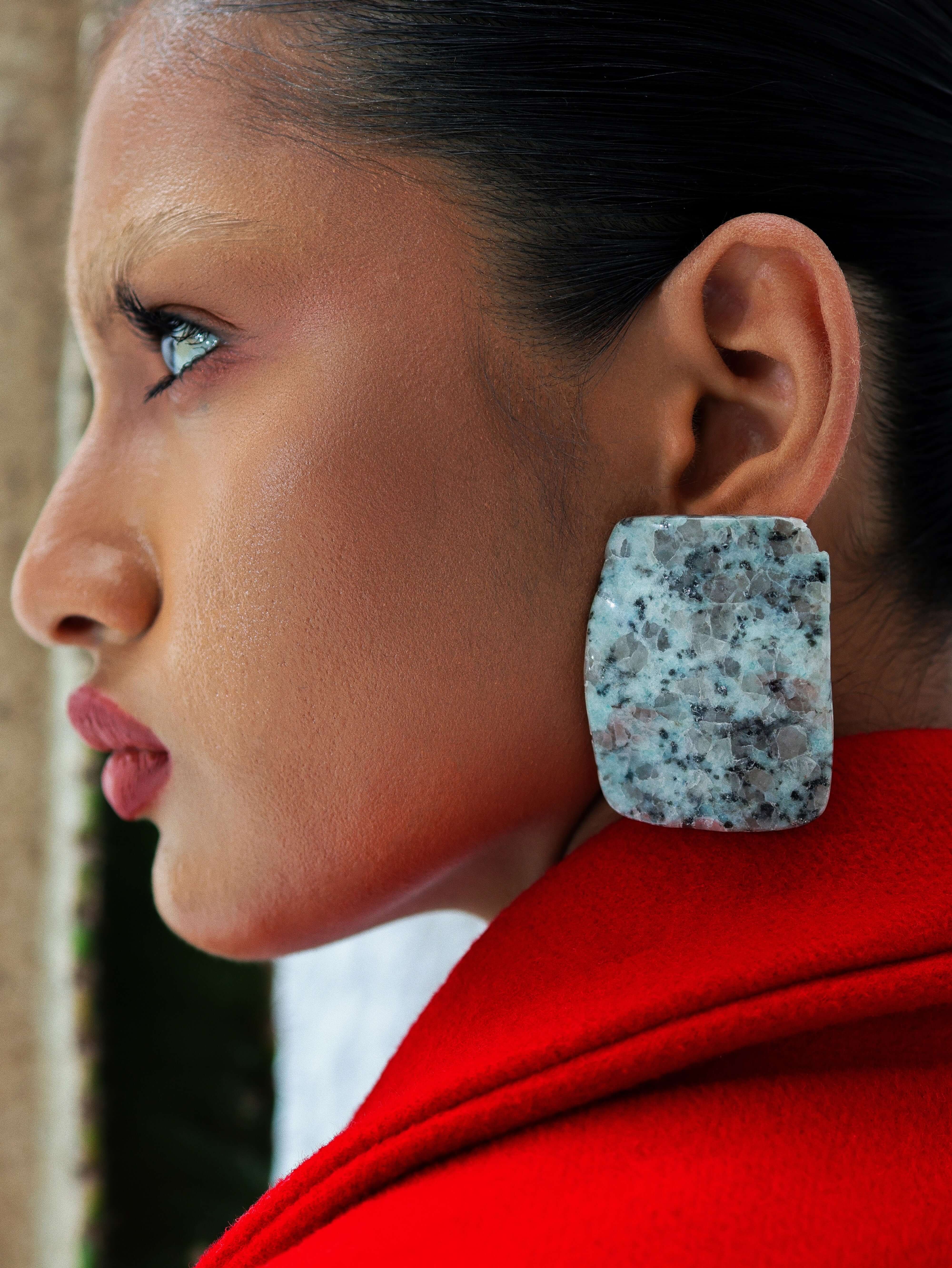 Structured and playful, the Kiwi Jasper Earrings highlight the stone’s mint green base and speckled inclusions in clean rectangular silhouettes.