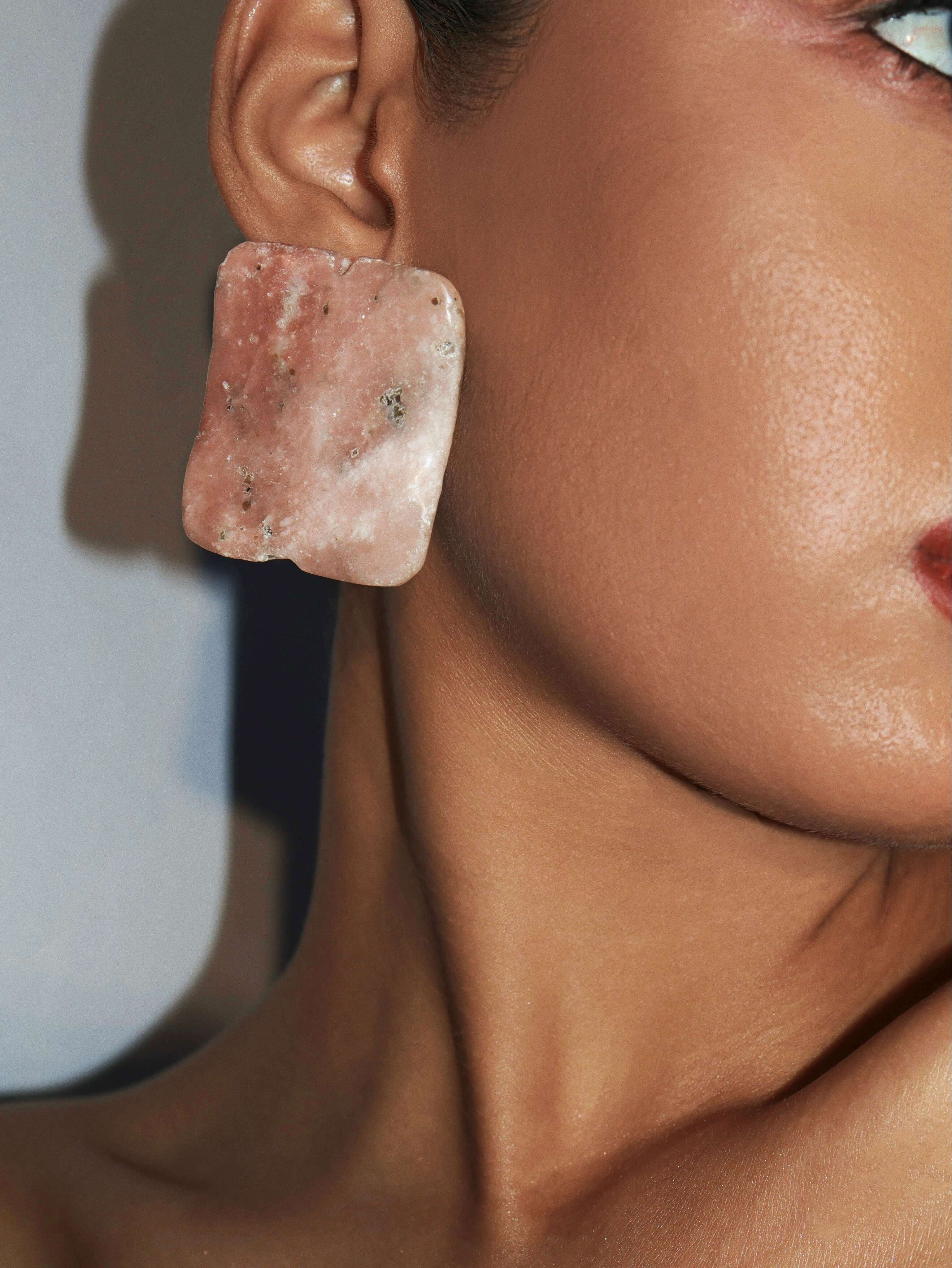 The Pink Opal Earrings highlight the gentle depth of pink opal - a stone known for its calm and grounded energy. Sculptural yet soft, they bring a natural elegance to contemporary style.