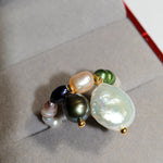 Materials: Natural pink, white, black, purple, and green freshwater pearls, 10k gold hardware